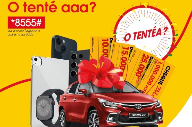 Le premier opérateur global qui avance pour les Togolais annonce le lancement officiel de son jeu Quiz Data et de la Tombola Ticket gagnant. Les participants peuvent gagner une magnifique Toyota Starlet et d’autres lots également. Cet instant quiz couvre la période du 23 mai au 21 juillet 2023. « O tentéaa », qui signifie littéralement « As-tu tenté ta chance via le numéro court 8 555 ». « O tentéaa » devient le slogan de cette nouvelle campagne.